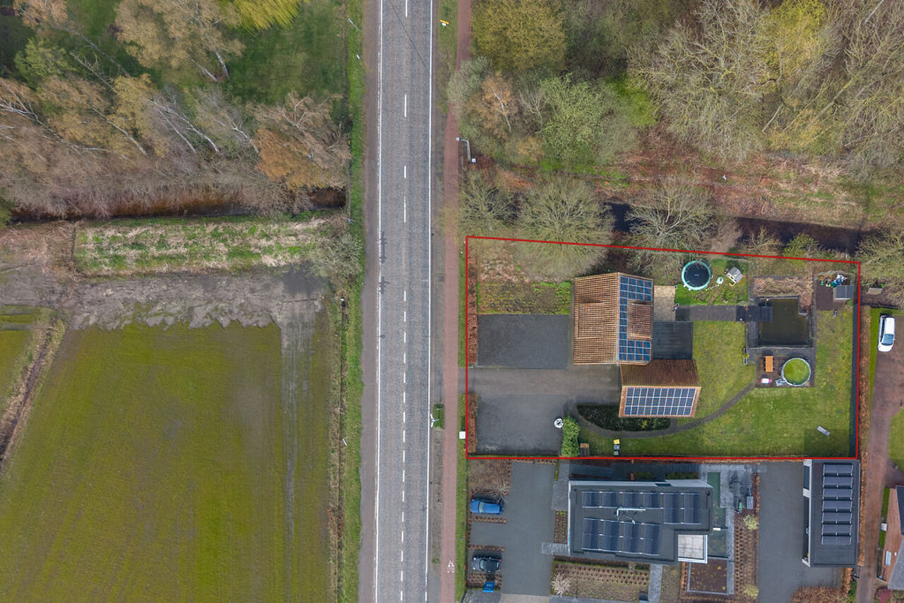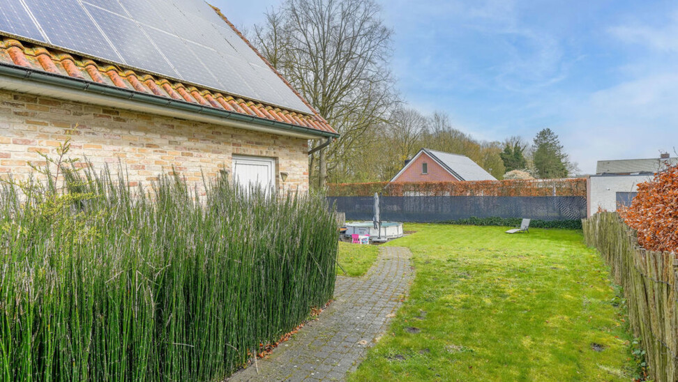 De woning is gelegen op een ruim perceel met een volledig omheinde tuin, een vijver en een speels hoogteverschil. De tuin biedt veel privacy.