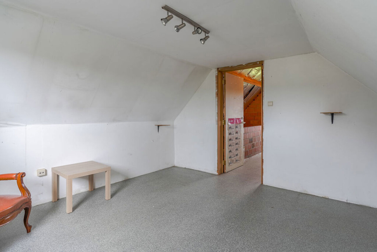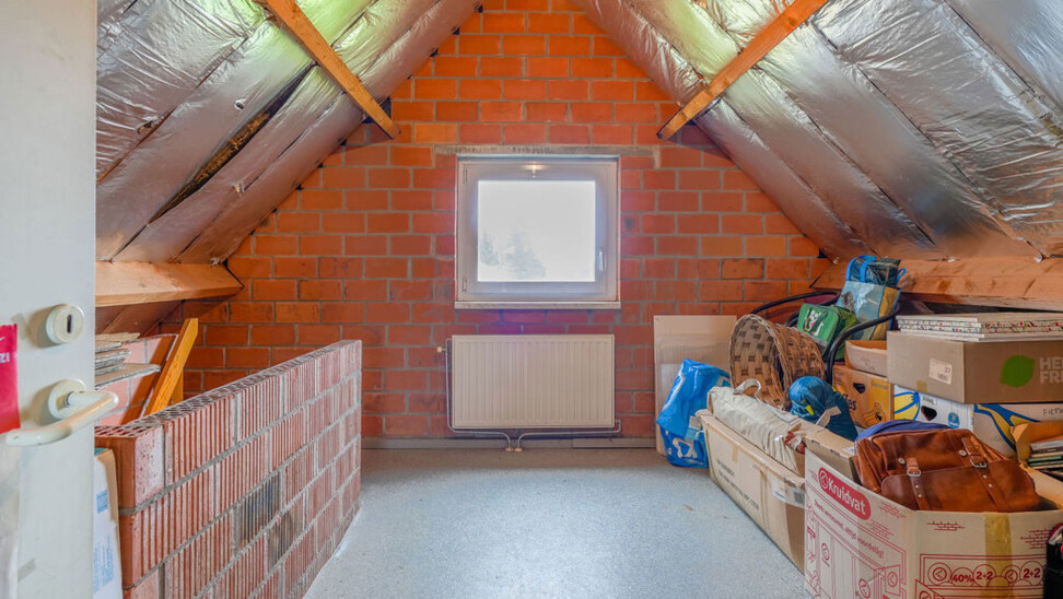 De garage met elektrische poort is een grote troef. Deze biedt plaats aan twee wagens en is voorzien van aansluitingen voor een wasmachine en droogkast. De verdieping boven de garage biedt extra ruimte en leent zich perfect als hobbyruimte, opslagruimte of eventueel als praktijk- of kantoorruimte aan huis.